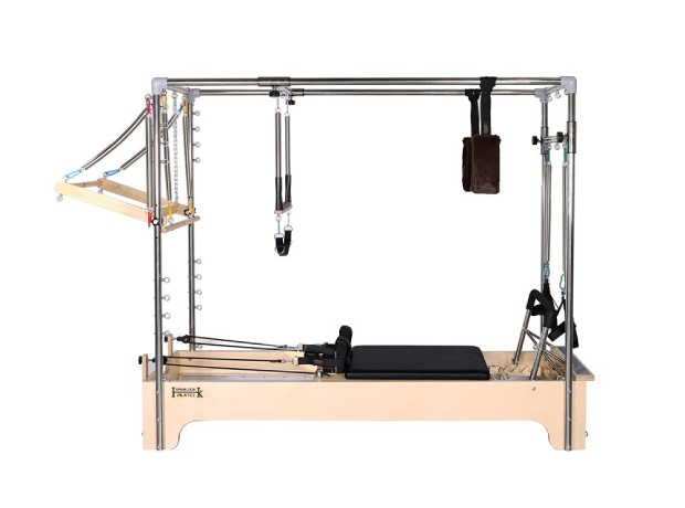 캐포머는 캐딜락+리포머의 합성어로 둘의 장점을 극대화한 치료 기구입니다. 몸의 중심부와 연결된 척추, 복부, 허리, 어깨 주위의 근육 강화와 유연성 강화에 탁월한 효과가 있어 척추 질환 환자나 신체의 불균형 교정에 유용합니다.