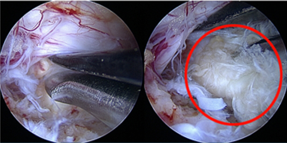 터진 디스크를 내시경으로 제거하는 모습
