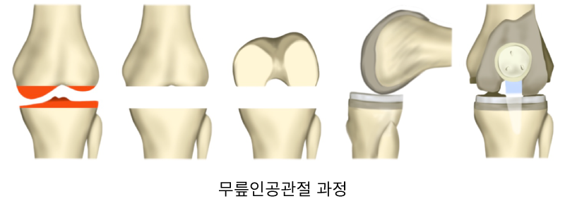 연골파열이나 퇴행성 변화가 나타나 관절이 닳거나 손상되어 통증과 함께 제 기능을 하지 못할 때 손상 부위를 제거하고 특수 제작된 인공관절을 대체하는 수술입니다.
