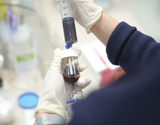 PRP 키트에 채혈한 혈액을 주입