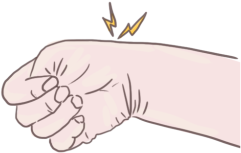 엄지손가락을 감싸 쥔 후 손목을 아래로 꺾어보는 방법인데 이때 엄지손가락과 이어지는 손목 부분에서 통증이 느껴진다면 손목 건초염(드퀘르벵병)을 의심해 볼 수 있습니다.