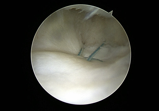 삼각 섬유연골을 봉합한 모습