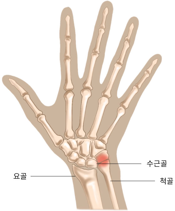 손목관절에는 두 개의 큰 뼈인 요골과 척골이 있는데 손목의 과도한 사용이나 외상, 퇴행성 변화 등으로 요골이 단축되고 척골이 상대적으로 길어져 척골과 수근골이 충돌하면서 통증이 나타나는 질환입니다.