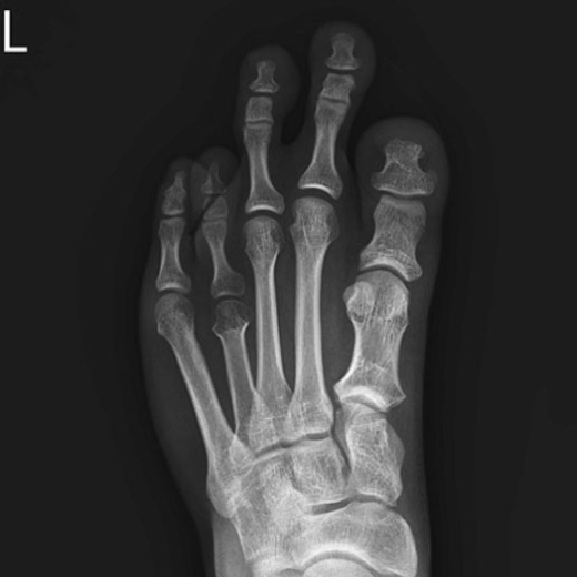 □ 외관상으로도 보기에 유독 짧은 발가락이 있음