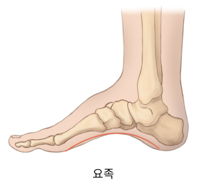 평발과는 반대로 발 안쪽의 아치가 정상보다 높으며 발등이 좁고 발뒤꿈치가 발 안쪽으로 틀어진