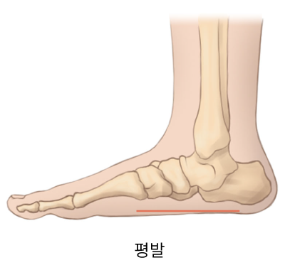 발 변형 중 가장 흔한 형태 발바닥 안쪽 아치(arch)가 소실되거나 비정상적으로 낮아진 변형을 말합니다.