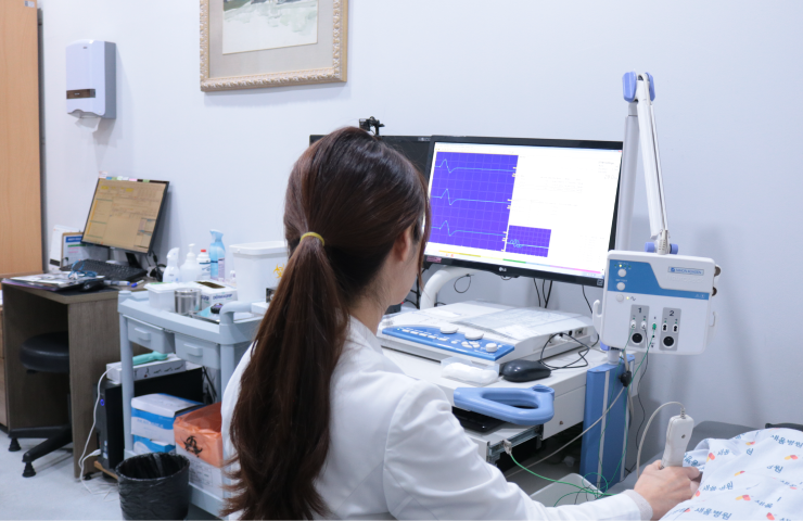 신경과 근육의 전기생리학적 현상을 기록하는 검사로 신경 근육 질환이 의심될 경우 그 병변의 위치가 어는 곳인지와 병의 진행 여부 및 회복여부를 판별할 수 있는 검사로 임상에서 매우 중요하게 다루어 지고 있는 검사입니다.
