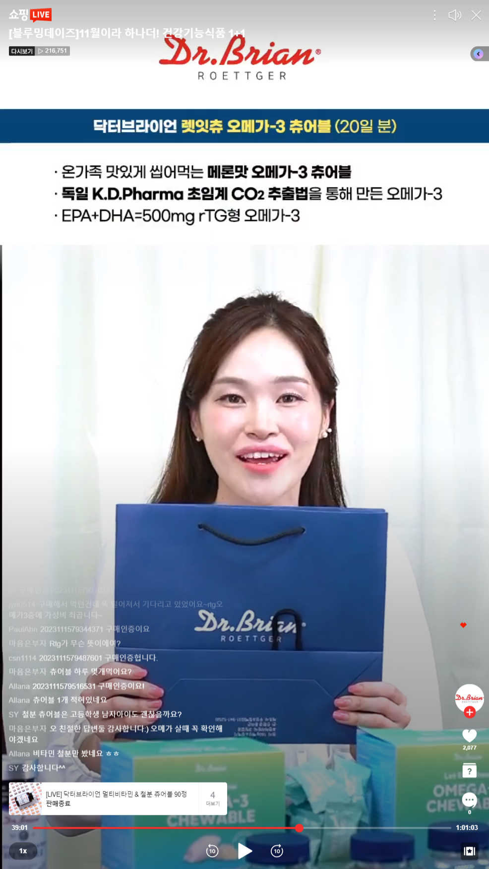 라이브 쇼핑을 이끌어갑니다.